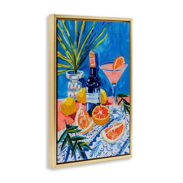 Wine Bottle & Citrus by LSR Design Studio Gold Floater Frame Food Graphic Art Print 25 in. x 17 in.