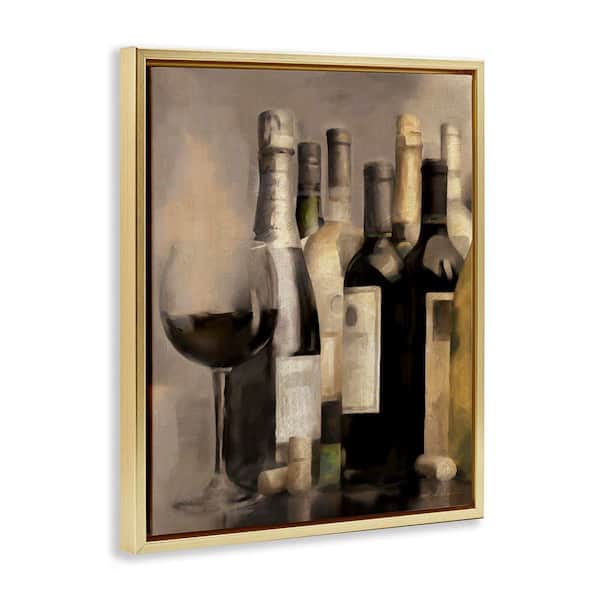 Wine Glass with Bottles by Carol Robinson Gold Floater Frame Food Graphic Art Print 31 in. x 25 in.