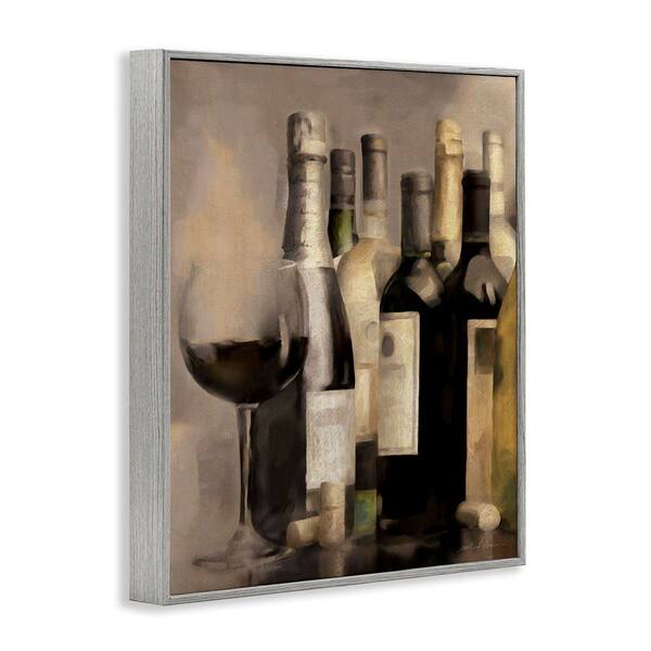 Wine Glass with Bottles by Carol Robinson Gray Framed Food Giclee Art Print 20 in. x 16 in.