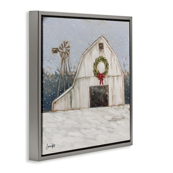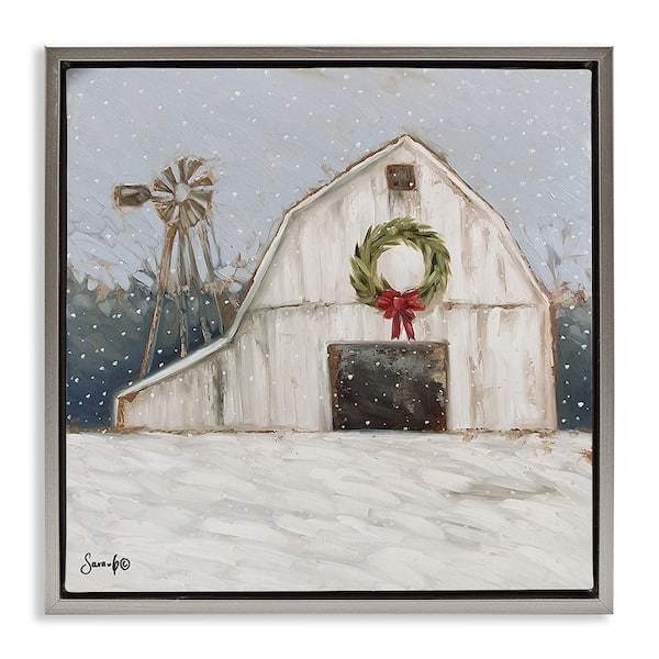 Winter Barn with Snowflakes by Sara G. Designs 1 Piece Floater Frame Graphic Print Nature Art Print 18 in. x 18 in.