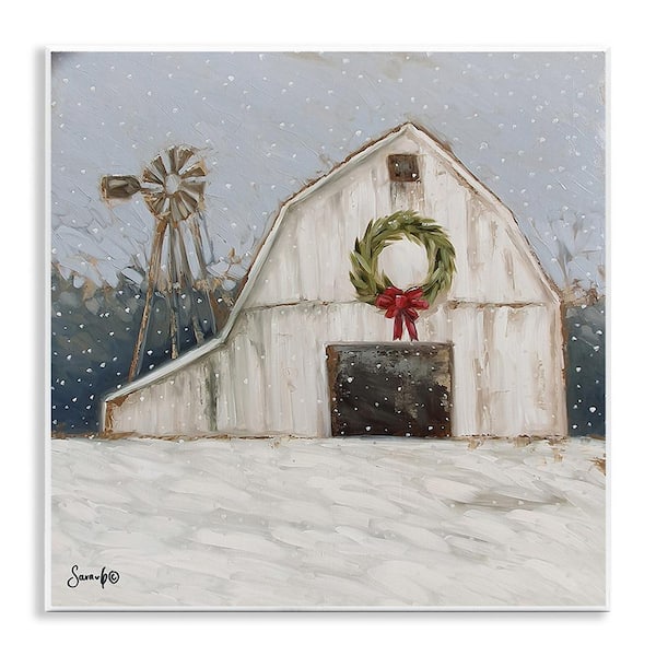 Winter Barn with Snowflakes by Sara G. Designs 1 Piece Unframed Graphic Print Nature Poster Art Print 12 in. x 12 in.
