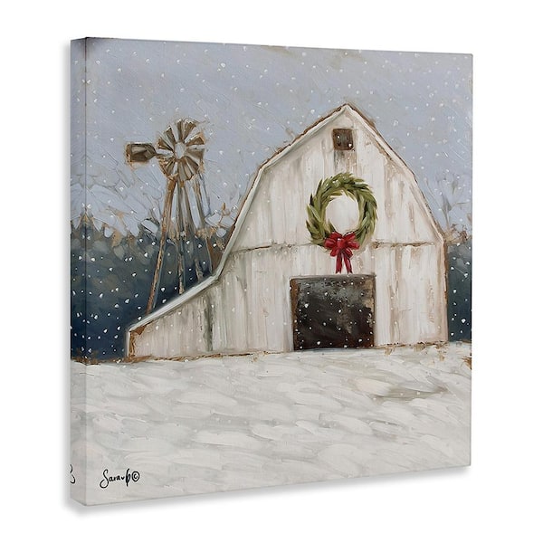 Winter Barn with Snowflakes bySara G. Designs 1-Piece Unframed Graphic Print Nature Poster Art Print 30 in. x 30 in.