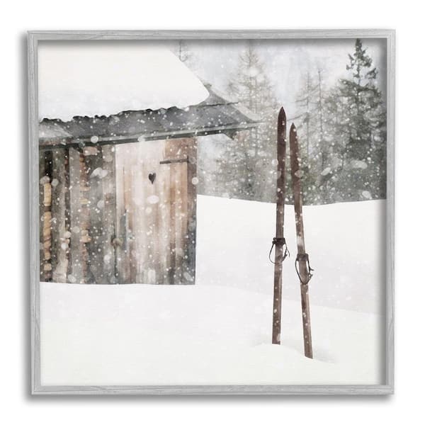 Winter Cabin Skis by LSR Design Studio 1-Piece Framed Graphic Print Nature Poster Art Print 12 in. x 12 in.