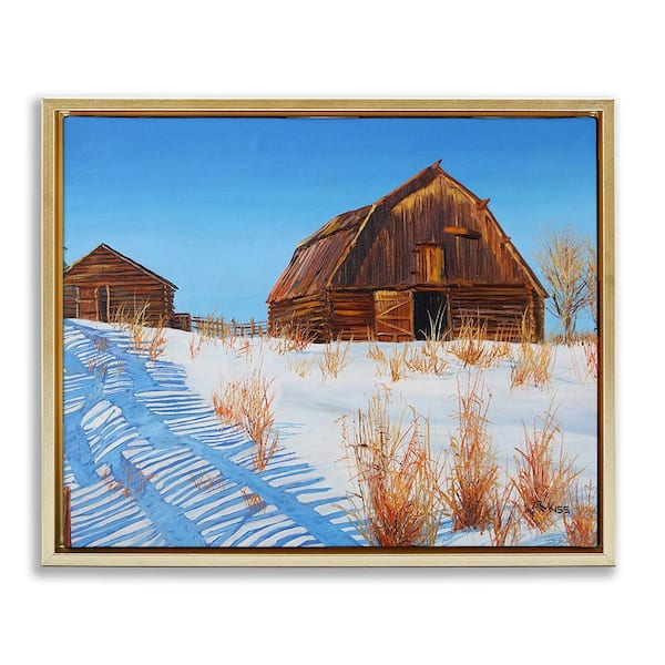Winter Country Barn by Andrew Kiss 1-Piece Floater Frame Graphic Print Nature Poster Art Print 21 in. x 17 in.