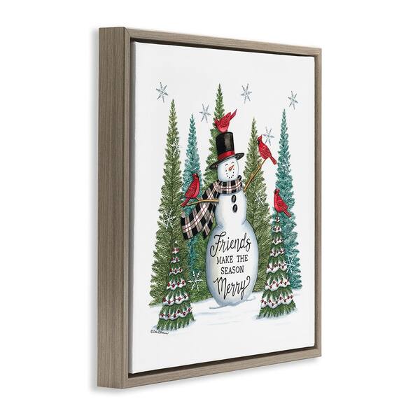Winter Friendship Snowman by Deb Strain 1-Piece Floater Frame Graphic Print Typography Poster Art Print 18 in. x 18 in.