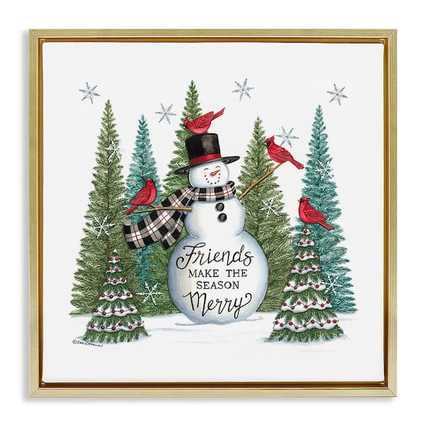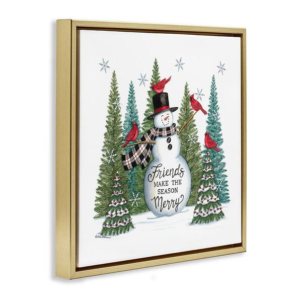 Winter Friendship Snowman by Deb Strain 1-Piece Floater Frame Graphic Print Typography Poster Art Print 18 in. x 18 in.