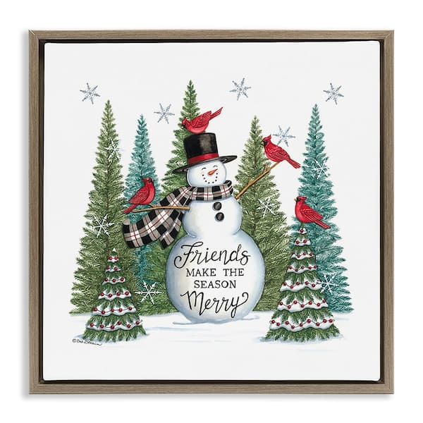 Winter Friendship Snowman by Deb Strain 1-Piece Floater Frame Graphic Print Typography Poster Art Print 25 in. x 25 in.