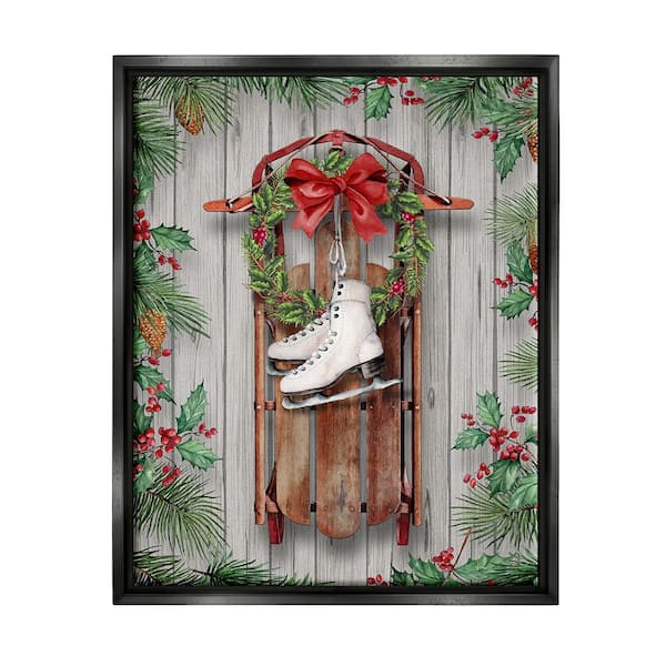 Winter Ice Skates and Sled by Conrad Knutsen 1-Piece Floater Frame Graphic Print Nature Poster Art Print 31 in. x 25 in.