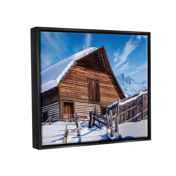 Winter Log Cabin Photography by Beth Sheriden 1-Piece Floater Frame Graphic Print Architecture Art Print 31 in. x 25 in.