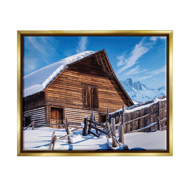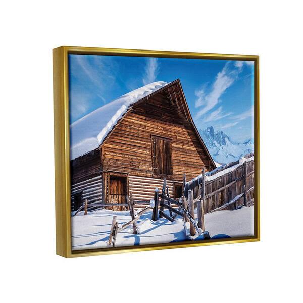 Winter Log Cabin Photography by Beth Sheriden 1-Piece Floater Frame Graphic Print Architecture Art Print 31 in. x 25 in.