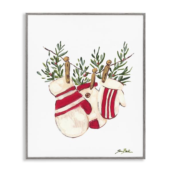 Winter Mittens on Clothesline by Sara Baker 1-Piece Framed Graphic Print Nature Poster Art Print 30 in. x 24 in.