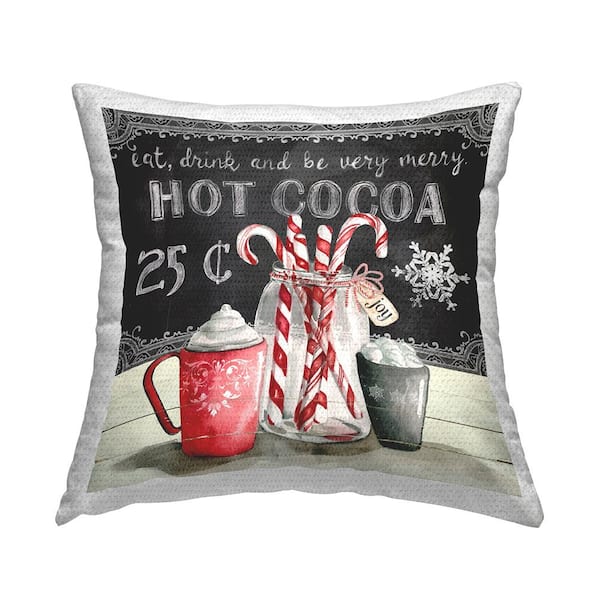 Winter Peppermint & Cocoa Black Square Outdoor Throw Pillow