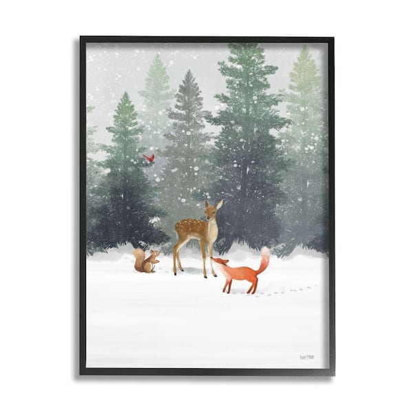 "Winter Season Forest Animals Fox Deer Squirrel" by House Fenway Framed Animal Wall Art Print 11 in. x 14 in.