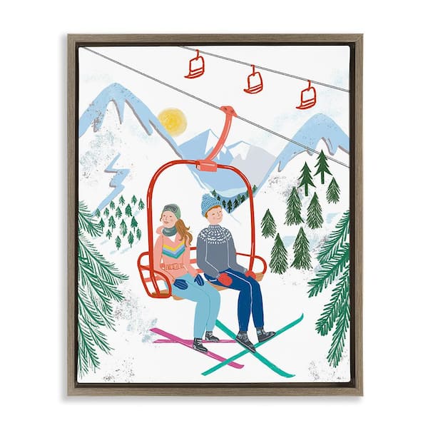 Winter Ski Lift Friends by Jo Reid 1-Piece Floater Frame Graphic Print Sports Poster Art Print 21 in. x 17 in.