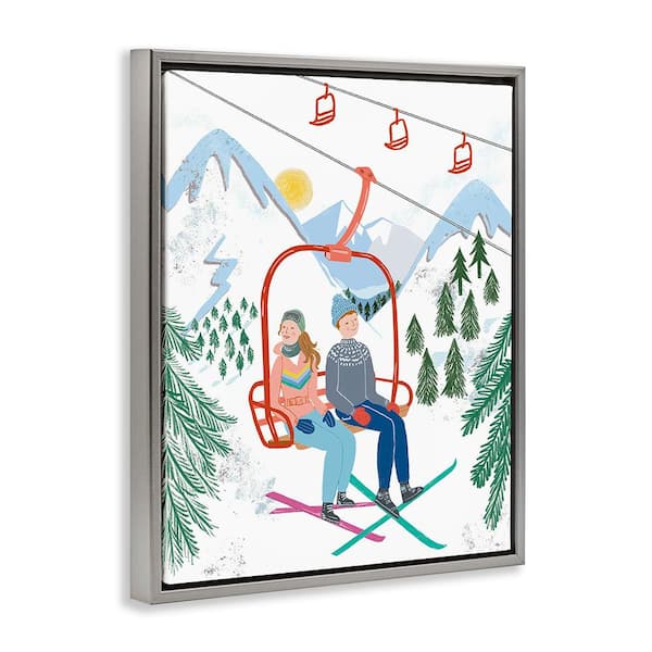 Winter Ski Lift Friends by Jo Reid 1 Piece Floater Frame Graphic Print Sports Poster Art Print 31 in. x 25 in.