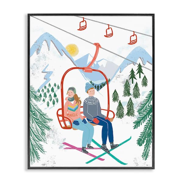 Winter Ski Lift Friends by Jo Reid 1-Piece Framed Graphic Print Sports Poster Art Print 14 in. x 11 in.