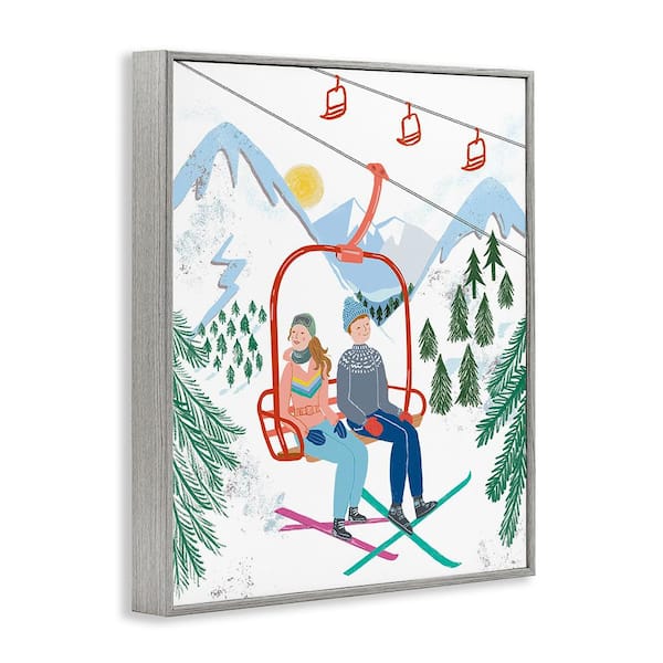 Winter Ski Lift Friends by Jo Reid 1-Piece Framed Graphic Print Sports Poster Art Print 30 in. x 24 in.