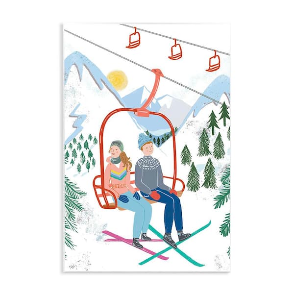 Winter Ski Lift Friends by Jo Reid 1-Piece Unframed Graphic Print Sports Poster Art Print 19 in. x 13 in.