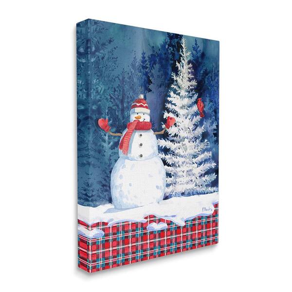 Winter Snowman on Plaid by Paul Brent 1-Piece Unframed Graphic Print Nature Poster Art Print 48 in. x 36 in.