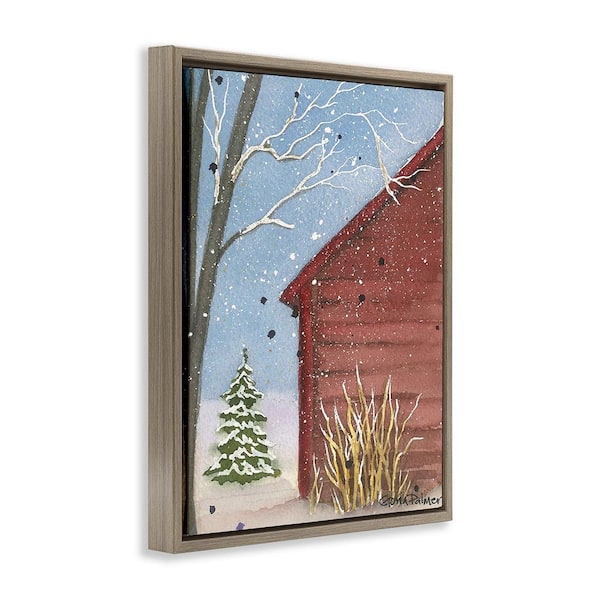 Winter Snowy Cabin by Gloria Palmer 1 Piece Floater Frame Graphic Print Nature Poster Art Print 31 in. x 25 in.