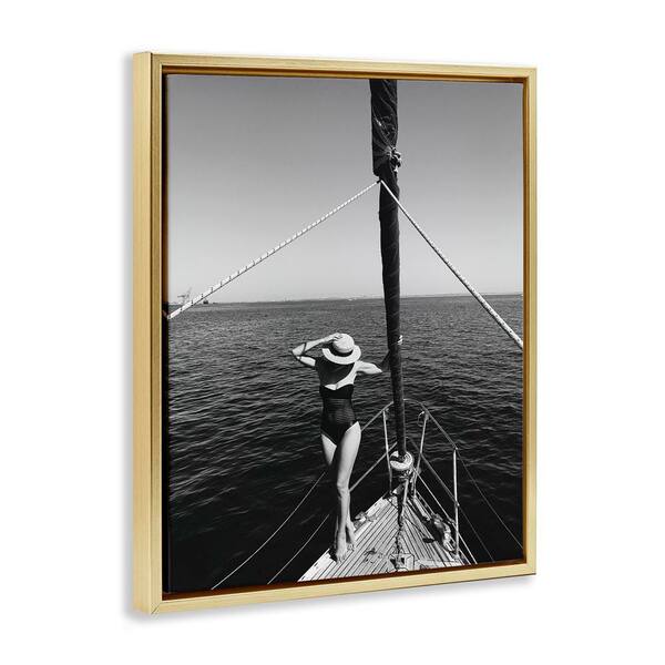 Woman Posing on Boat by LSR Design Studio Gold Floater Frame People Graphic Art Print 21 in. x 17 in.