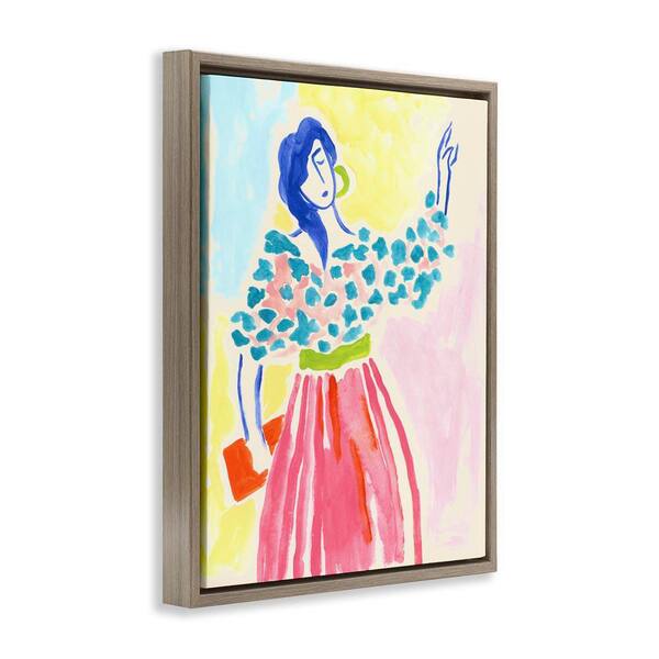 Woman in Bold Dress by June Erica Vess Brown Floater Frame People Graphic Art Print 21 in. x 17 in.