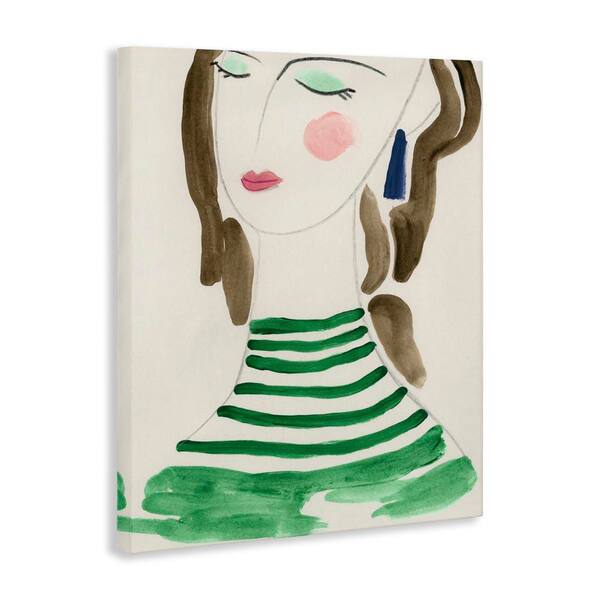 Woman in Green Stripes by June Erica Vess Unframed People Graphic Art Print 48 in. x 36 in.