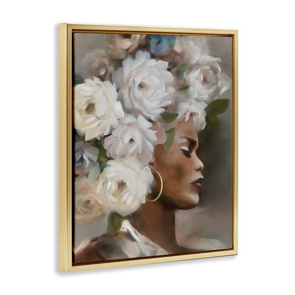 Woman with Floral Headdress by Carol Robinson Gold Floater Frame Nature Graphic Art Print 21 in. x 17 in.
