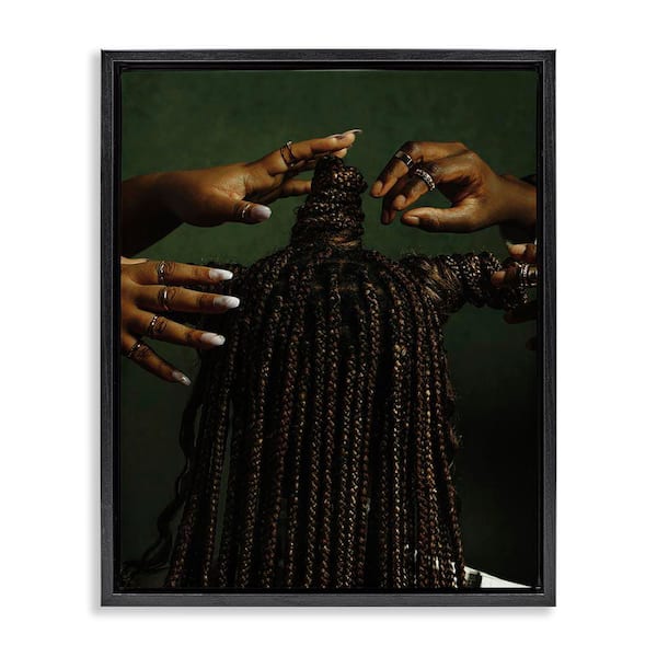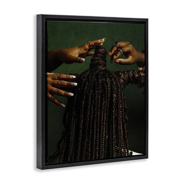 Women Braiding Hair by Oladimeji Odunsi Black Floater Frame People Graphic Art Print 31 in. x 25 in.