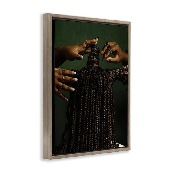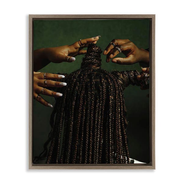 Women Braiding Hair by Oladimeji Odunsi Brown Floater Frame People Graphic Art Print 21 in. x 17 in.