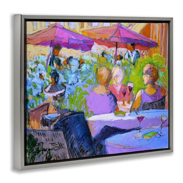 Women Dining Abstraction by June Erica Vess Gray Floater Frame People Graphic Art Print 17 in. x 21 in.