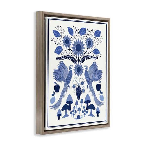 Woodland Blue Folk Pattern by Darlene Seale Brown Floater Frame Nature Graphic Art Print 21 in. x 17 in.