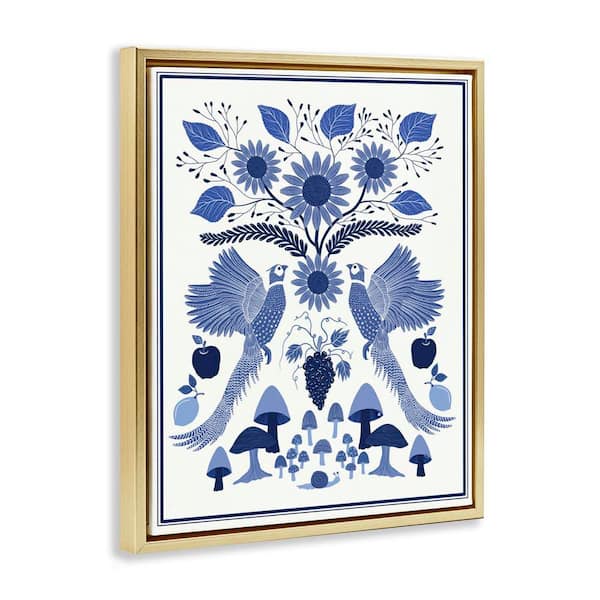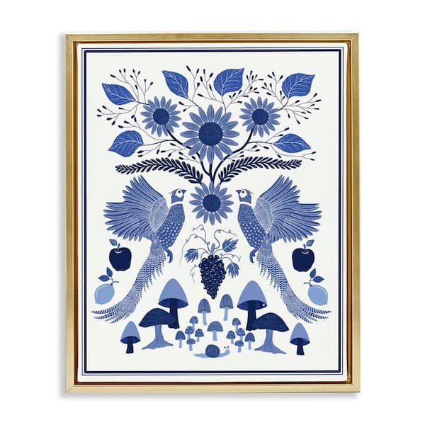 Woodland Blue Folk Pattern by Darlene Seale Gold Floater Frame Nature Graphic Art Print 31 in. x 25 in.