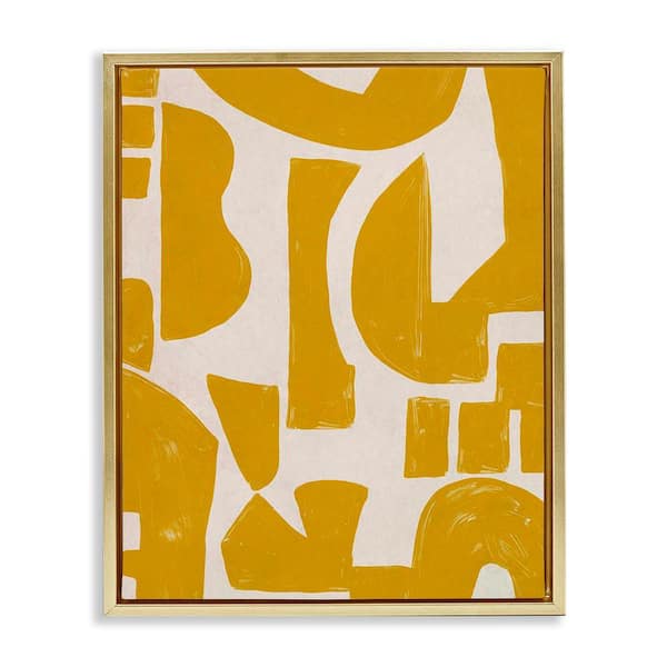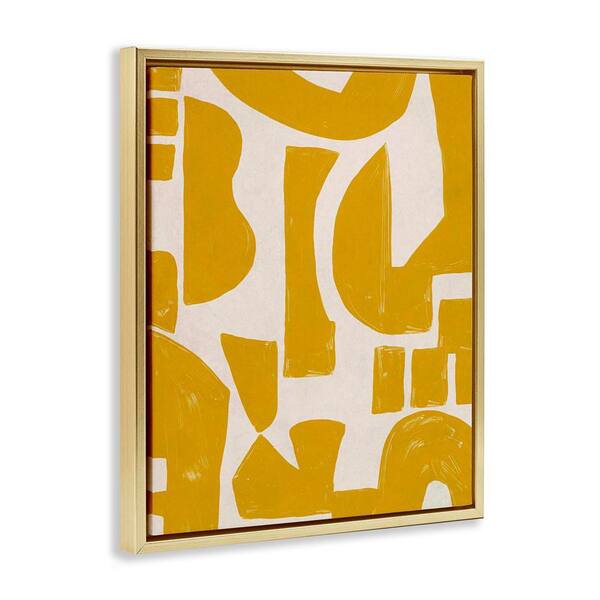 Yellow Asymmetrical Shapes by June Erica Vess Gold Floater Frame Abstract Graphic Art Print 31 in. x 25 in.