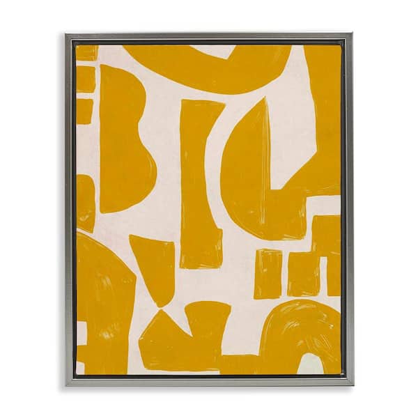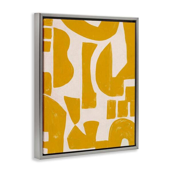 Yellow Asymmetrical Shapes by June Erica Vess Gray Floater Frame Abstract Graphic Art Print 31 in. x 25 in.