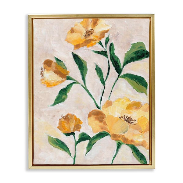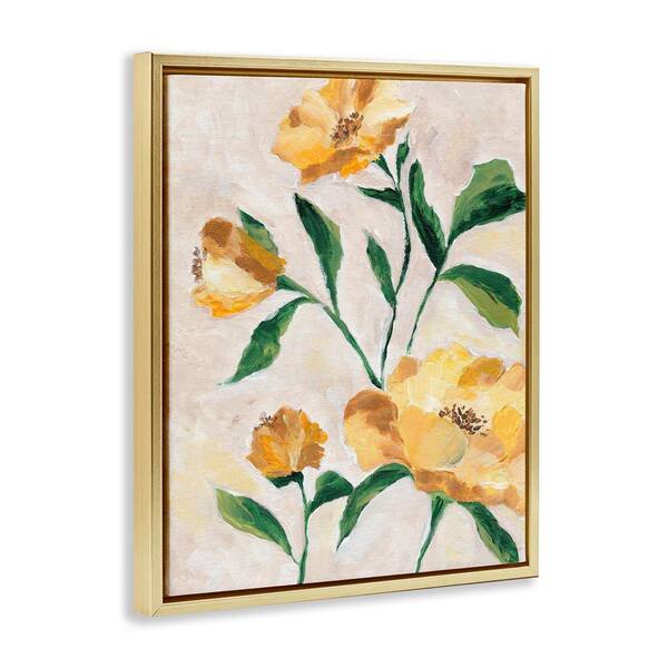 Yellow Camellia Blossoms by Nikita Jariwala Gold Floater Frame Nature Graphic Art Print 31 in. x 25 in.