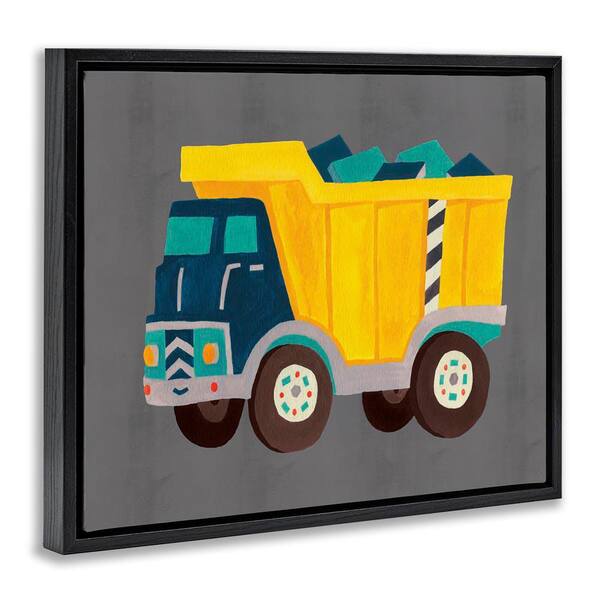 Yellow Dump Truck by Irene Chan Black Floater Frame Typography Graphic Art Print 25 in. x 31 in.