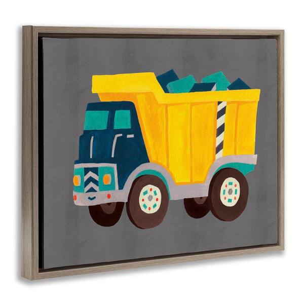 Yellow Dump Truck by Irene Chan Brown Floater Frame Typography Graphic Art Print 25 in. x 31 in.