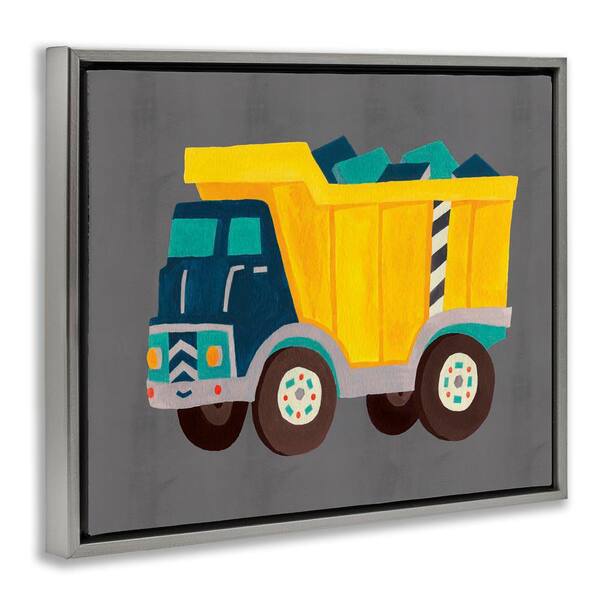 Yellow Dump Truck by Irene Chan Gray Floater Frame Typography Graphic Art Print 25 in. x 31 in.