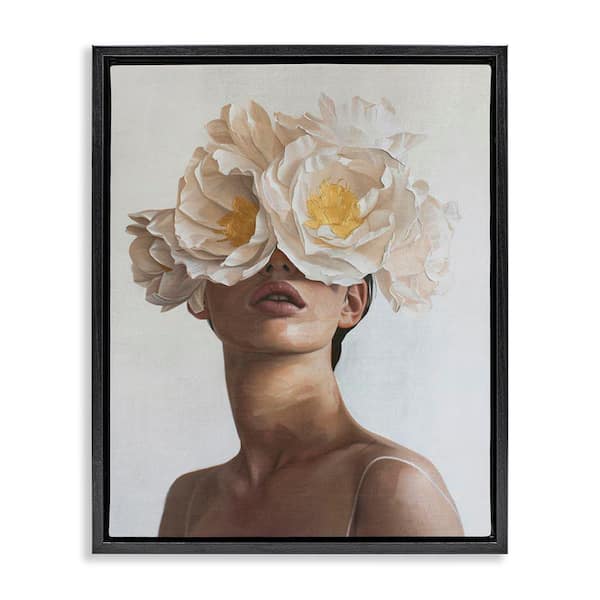 Yellow Flower Lady by Svetlana Aleynikova Black Floater Frame People Graphic Art Print 21 in. x 17 in.