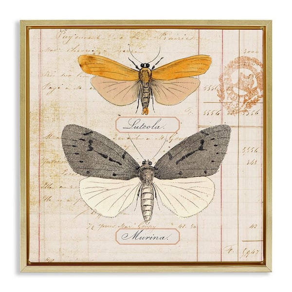 Yellow & Grey Butterflies by Susan Arnot Gold Floater Frame Animal Graphic Art Print 18 in. x 18 in.