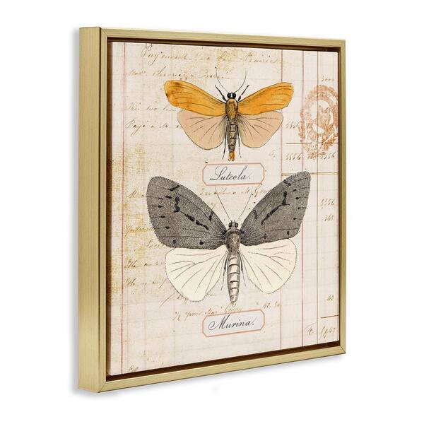 Yellow & Grey Butterflies by Susan Arnot Gold Floater Frame Animal Graphic Art Print 25 in. x 25 in.