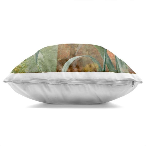 Yellow Lilies on Vintage Tile Yellow Abstract Polyester 18 in. X 18 in. Throw Pillow