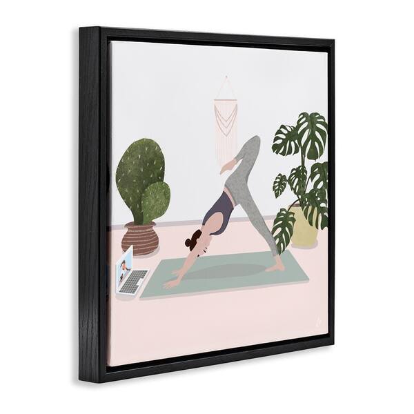 Yoga Stretches with Plants by Lydia Orange Black Floater Frame Nature Graphic Art Print 18 in. x 18 in.