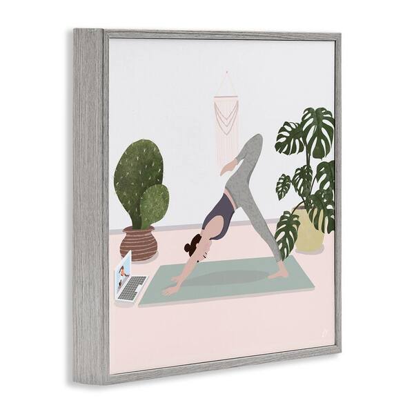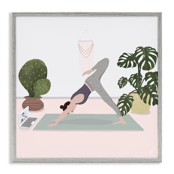 Yoga Stretches with Plants by Lydia Orange Gray Framed Nature Giclee Art Print 24 in. x 24 in.