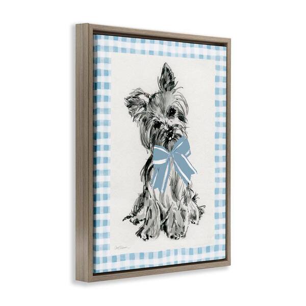 Yorkie with Plaid Border by Carol Robinson Brown Floater Frame Animal Graphic Art Print 21 in. x 17 in.