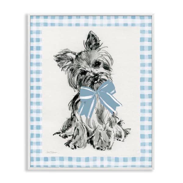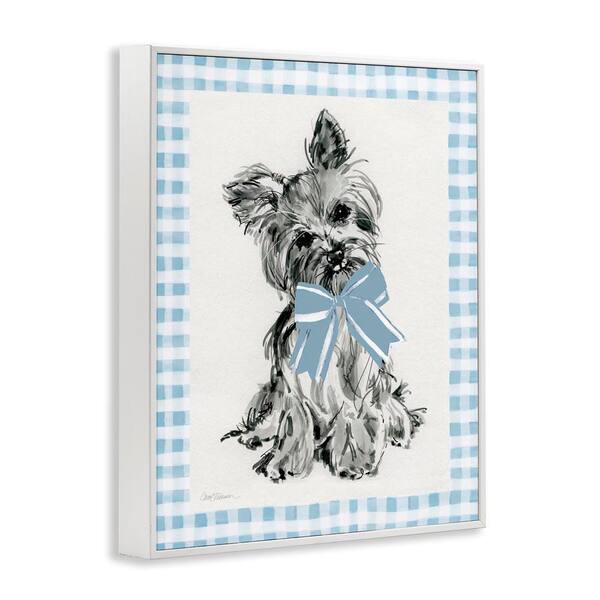 Yorkie with Plaid Border by Carol Robinson White Framed Animal Giclee Art Print 20 in. x 16 in.