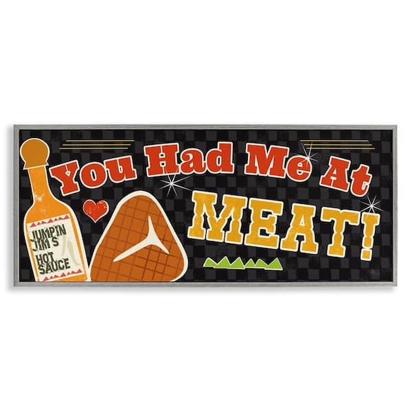 You Had Me At Meat by Pela Studio Gray Framed Food Giclee Art Print 10 in. x 24 in.