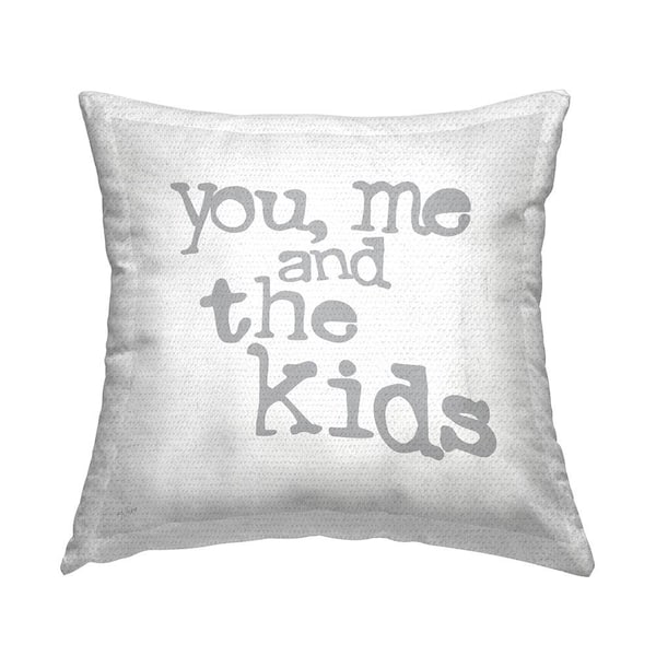 You Me and The Kids Fun Typography Family Phrase Grey Square Outdoor Throw Pillow