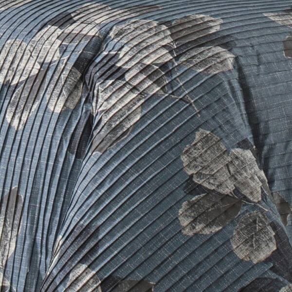 Steel Blue Pleated Leaf Scroll King Comforter Set